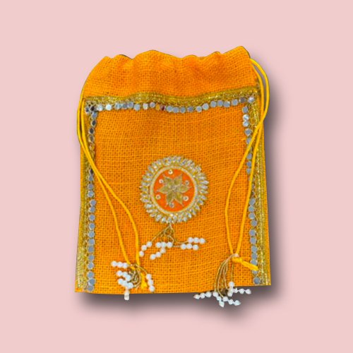Jute Pouch With Mirror Work And Gota Patti Motif